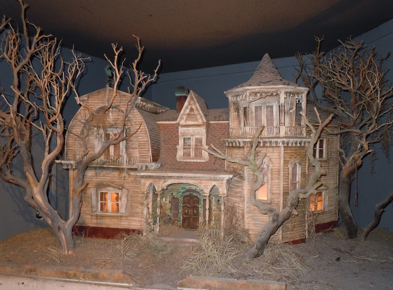 This miniature version of The Munsters spooky abode was photographed on display in Universal's House of Horrors on February 28, 2011. It was used in the new television series, where its expert modeling design and lighting made it appear real and life size on the small screen.