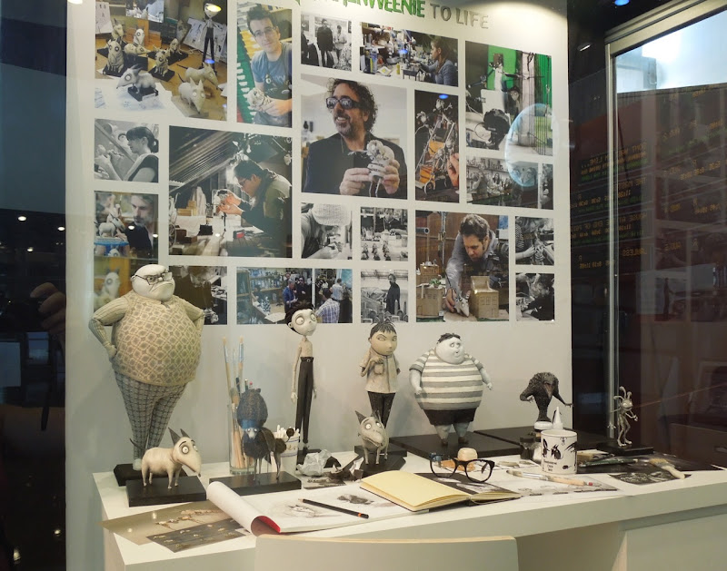 This fantastic exhibit of original production maquettes, concept artwork and puppets featured in the movie, which is a remake of Tim Burton's 1984 short of the same name, were photographed on display at ArcLight Sherman Oaks cinema on September 27, 2012.